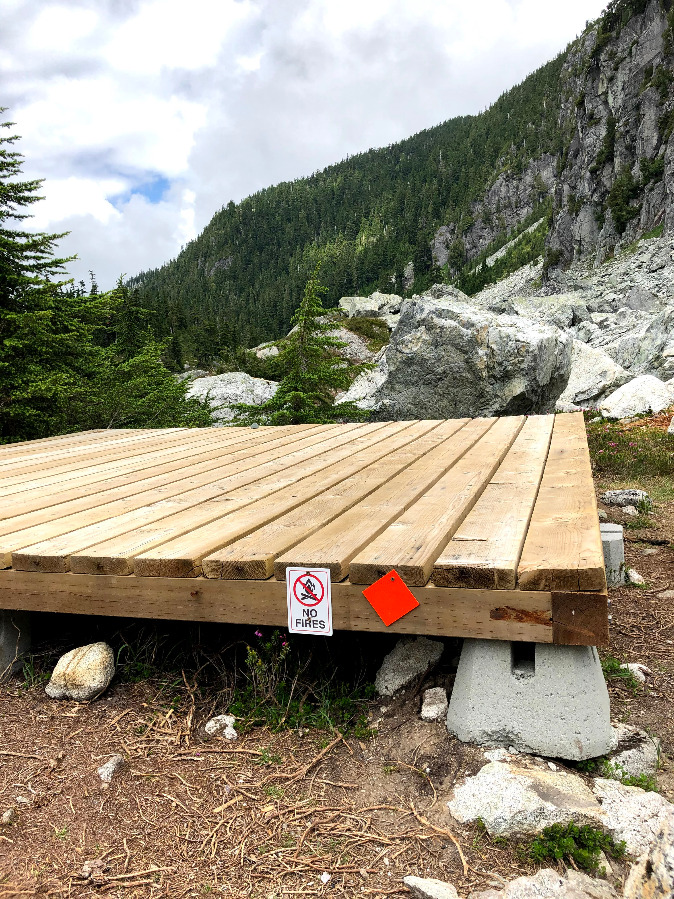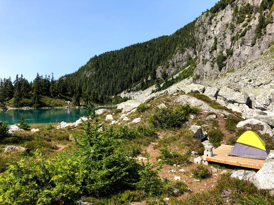 The Watersprite Lake Provincial Recreation Site features 14 alpine Tent Platforms and 6 Tent Sites, a fine outhouse, and is Managed by the British Columbia Mountaineering Club in Partnership with Rec Sites and Trails.